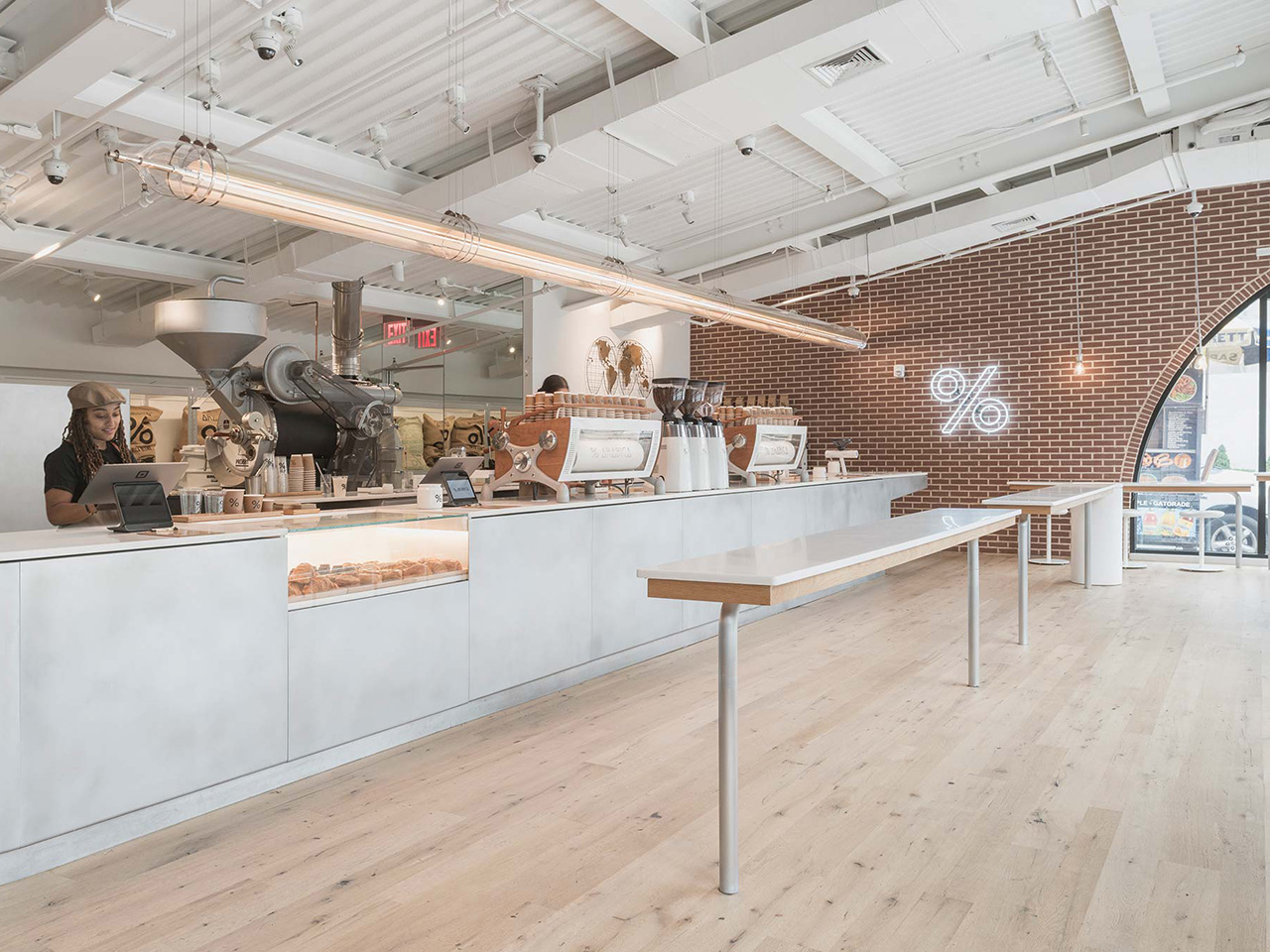 % Arabica’s U.S. flagship in DUMBO, designed by Paris-based architecture firm ciguë, is both spacious and airy, as well as warm and inviting. The floor is our Neutral Antique White Oak, reclaimed from agricultural structures in the Northeast.