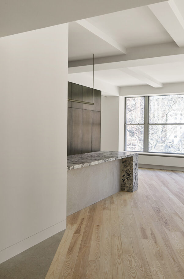 Camber Studio brought Tri-Lox onto their project to provide custom flooring and millwork for an office renovation at Crye Precision headquarters in the Brooklyn Navy Yard. Ash in a Neutral finish is used throughout the space, including herringbone flooring for the office’s yoga studio and countertops, table tops, benches, and cladding in five unique balconies.